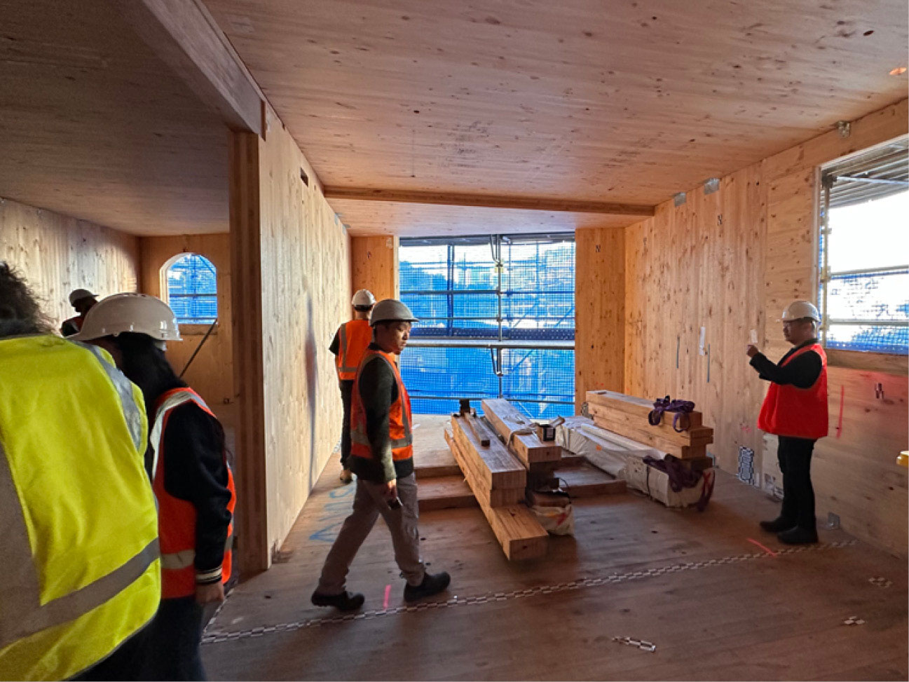 The combination of brick and CLT necessitated innovative solutions for code compliance and constructability. Above ground level, all floors and internal walls other than the lift shaft are CLT with the CLT timber face visible within each apartment.