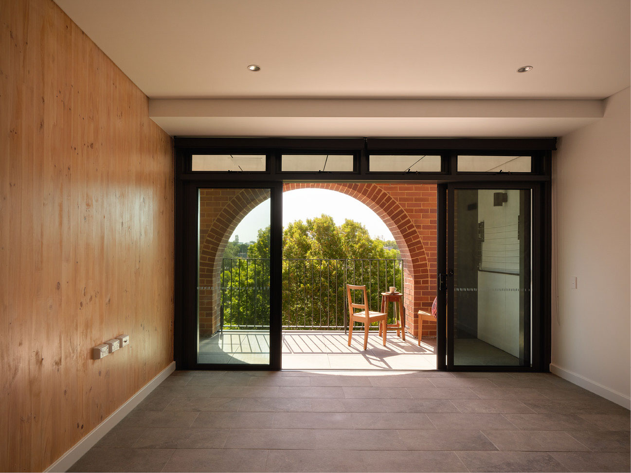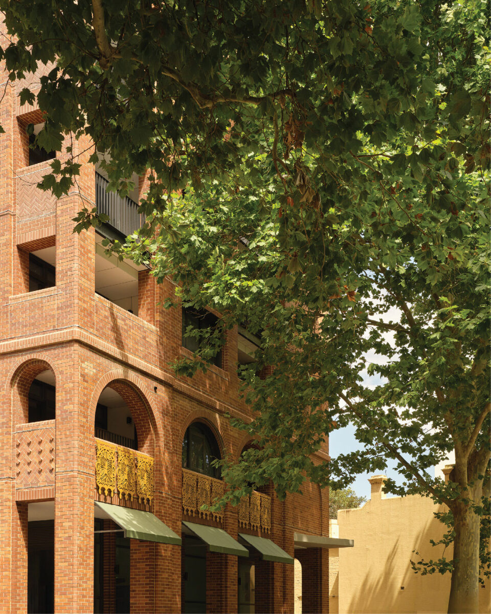 On the edge of a heritage conservation area, the built form responds to historic typologies that characterise Glebe and Pyrmont – Victorian terraces and large masonry wool stores which combined external brickwork with internal load-bearing timber structure.